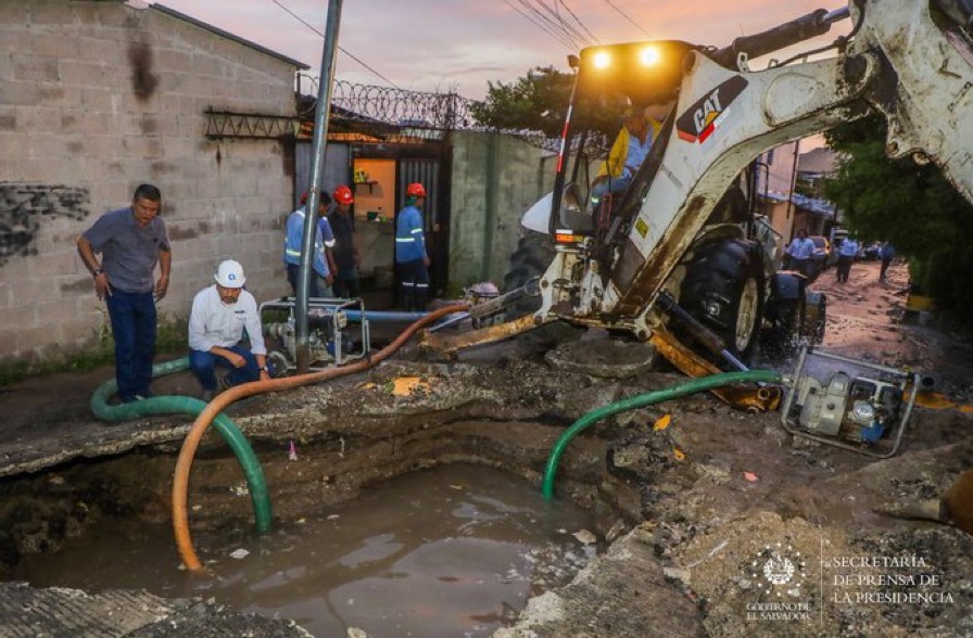«Nos encontramos en un sector de Mejicanos, donde una tubería de acero de 42 pulgadas, que conduce agua al 30 % del Gran San Salvador, del sistema Zona Norte, ayer tuvo una fuga de gran magnitud», explicó el titular de ANDA.