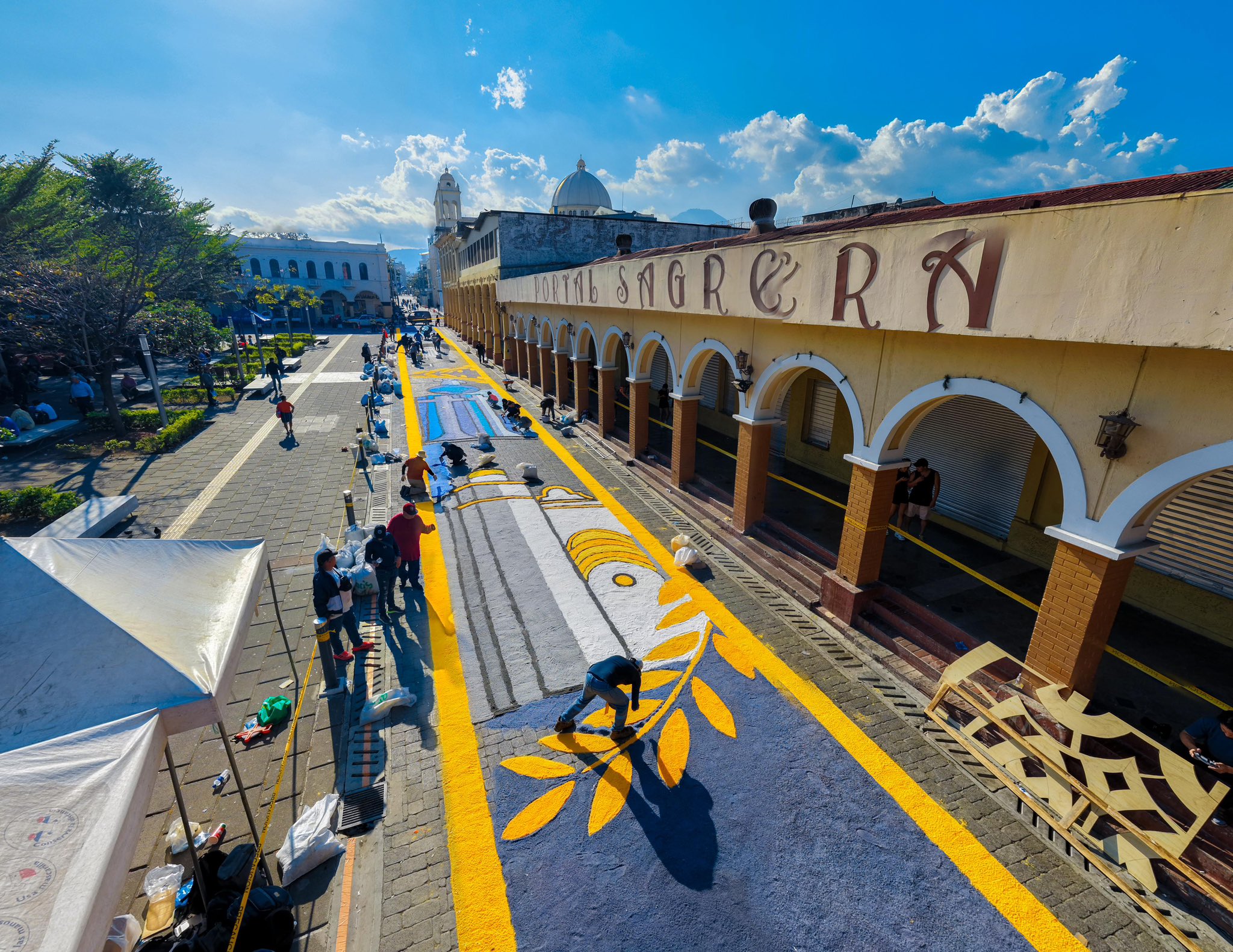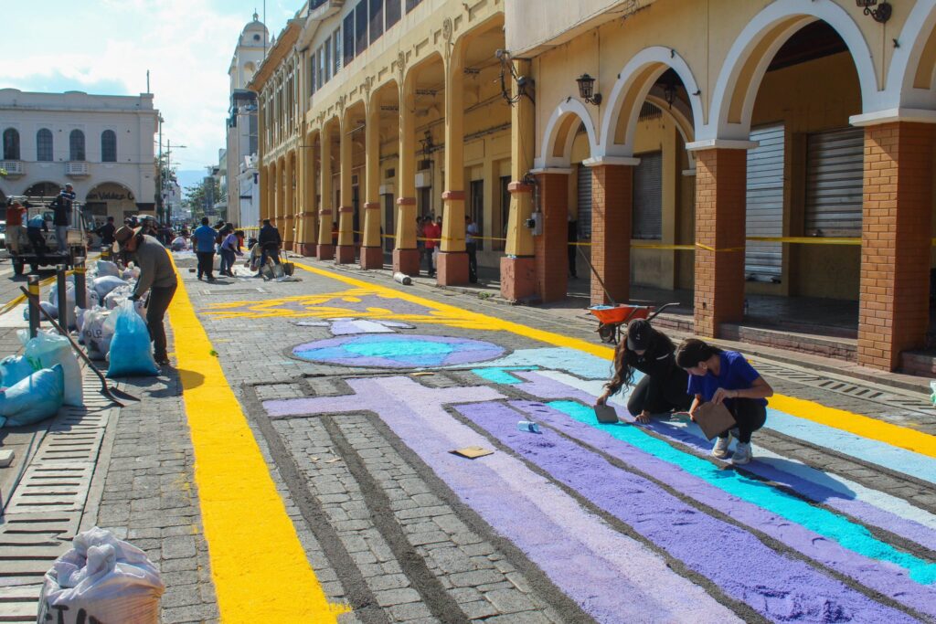ElSalvador–La Alcaldía de San Salvador Centro, a través de su Secretaría de Cultura, comenzó la elaboración de una megaalfombra en el Centro Histórico, como parte de las actividades tradicionales de Semana Santa.
