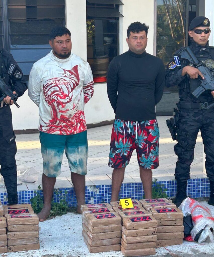 ElSalvador–Autoridades salvadoreñas capturaron a dos hombres que transportaban 450 kilogramos de cocaína valorados en más de $11.3 millones, durante un operativo marítimo ejecutado en las cercanías de la Isla de Méndez, en el departamento de Usulután.