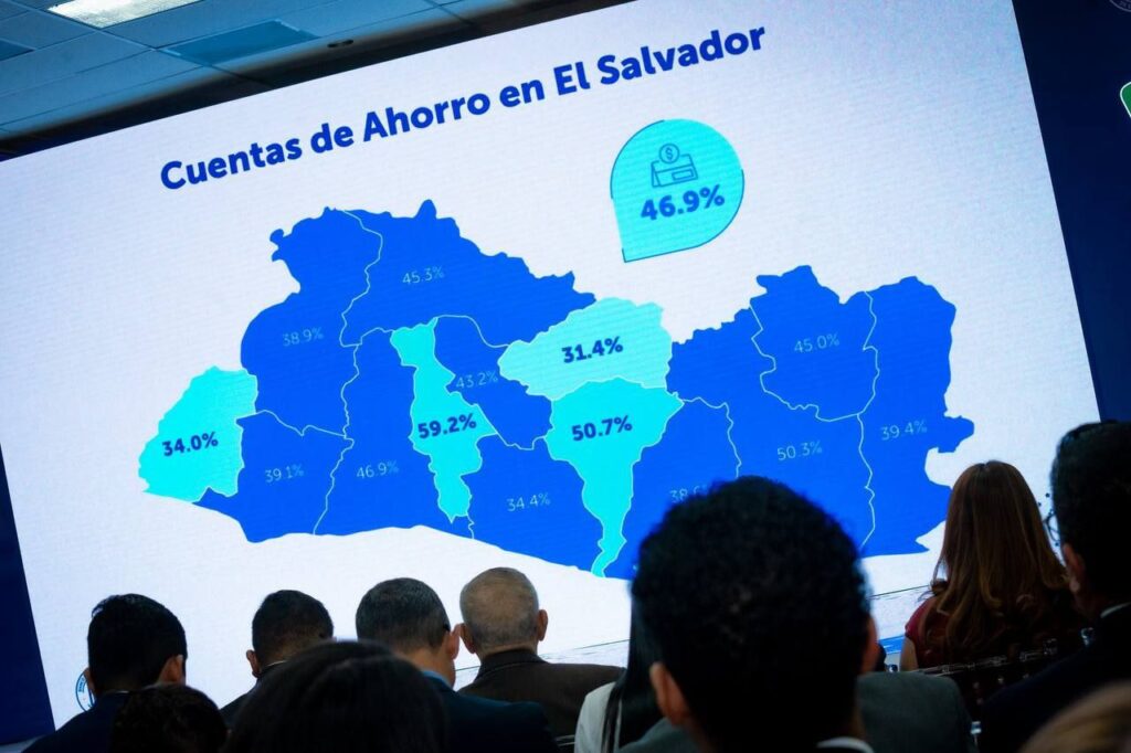 De acuerdo con el estudio, el 46.9 % de la población adulta en El Salvador posee una cuenta de ahorro, cifra que representa un incremento de 18.9 puntos porcentuales respecto al 2022, cuando solo el 28 % contaba con una. Además, 79 de cada 100 personas con cuenta bancaria tiene asociada una tarjeta de débito.