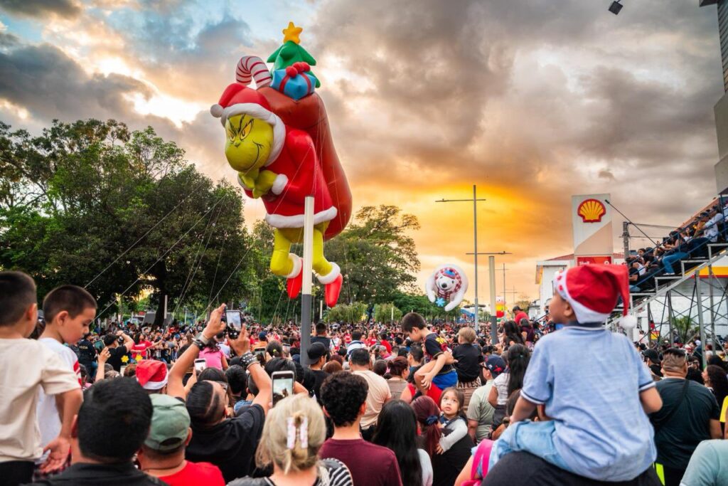 En su segunda edición consecutiva, el desfile contó con 11 globos gigantes de hasta 13 metros de altura, manipulados por unas 200 personas durante el recorrido. También participaron bandas de paz con más de 500 músicos, ocho carros clásicos y más de 30 personajes navideños, entre ellos Santa Claus, el Grinch, Rudolf, el Cascanueces y la galleta de jengibre.