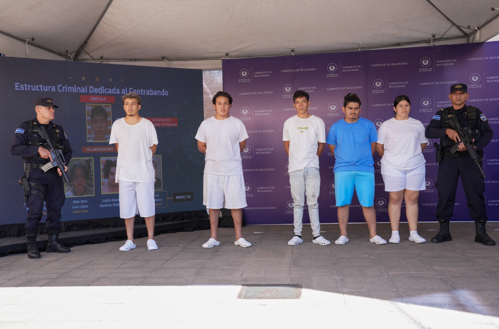 Los detenidos fueron identificados como Mario Ernesto Guevara Pineda (señalado como cabecilla y enlace entre El Salvador y Guatemala), Aldo Abel Lara López, alias “Cuto”; Justin Alexander Ramírez Maldonado; Meybelin Michelle Martínez Flores; y Polanco, presunto autor del homicidio.