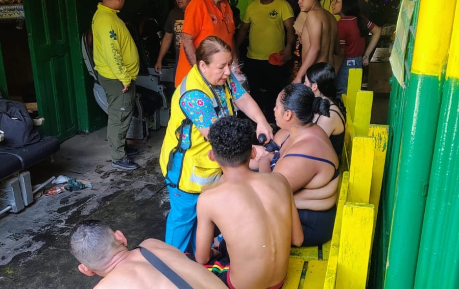 Las imágenes difundidas por Comandos de Salvamento muestran también irritaciones en pecho y brazos de algunos afectados, quienes recibieron atención médica en el lugar.