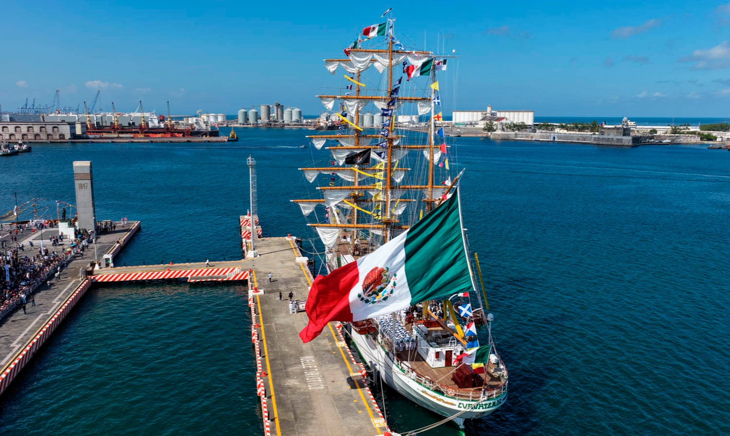 El Cuauhtémoc fue recibido en el marco del Bicentenario de la Consolidación de la Independencia en el Mar, ceremonia encabezada por la presidenta Claudia Sheinbaum en compañía del secretario de Marina, almirante Raymundo Pedro Morales Ángeles, y otras autoridades civiles y militares. El evento conmemoró la rendición del último bastión español en el fuerte de San Juan de Ulúa, en 1825.
