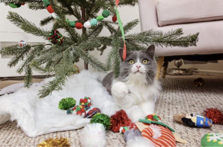 “El árbol de Navidad ofrece el máximo enriquecimiento para los gatos”, dijo Samantha Bell, experta en gatos de Best Friends Animal Society, una organización nacional líder en bienestar animal que trabaja para acabar con el sacrificio de perros y gatos en los albergues de Estados Unidos y llevar al país al modelo no-kill*. “Es un objeto nuevo y emocionante que apela a sus instintos naturales, y esos instintos les dicen que deben treparlo, esconderse en él, rascarlo, jugar con él y morderlo”.