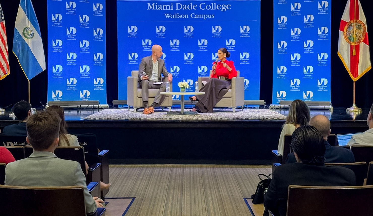 En otro punto de su agenda, participó en un conversatorio en el Miami Dade College, donde abordó avances en seguridad, economía e innovación, además de fortalecer los vínculos bilaterales entre El Salvador y Estados Unidos.