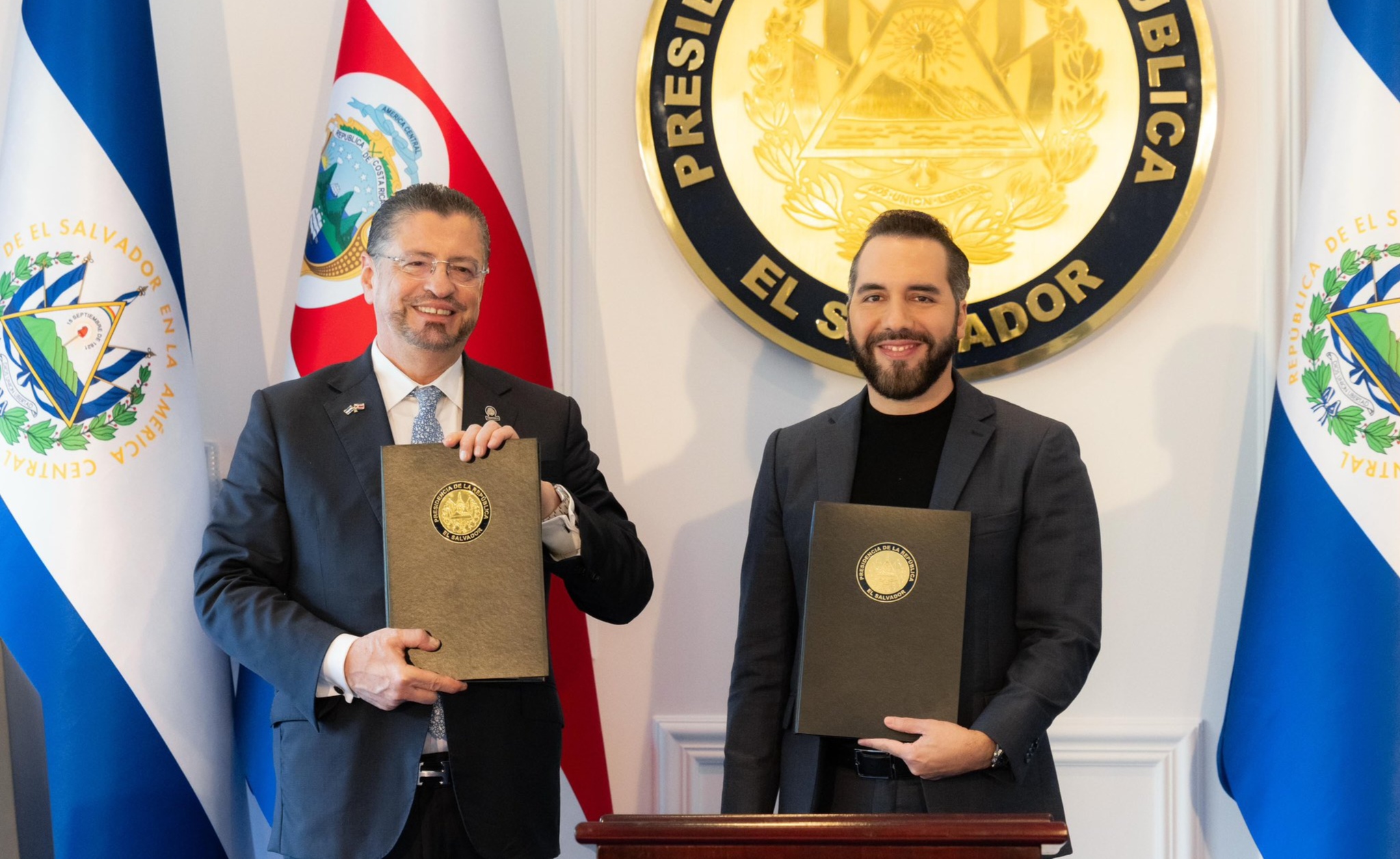 El pacto fue suscrito en la Residencia Presidencial junto al Lago de Coatepeque por los presidentes Nayib Bukele y Rodrigo Chaves, acompañados de sus respectivos ministros de Relaciones Exteriores, Alexandra Hill Tinoco y Arnoldo André Tinoco.