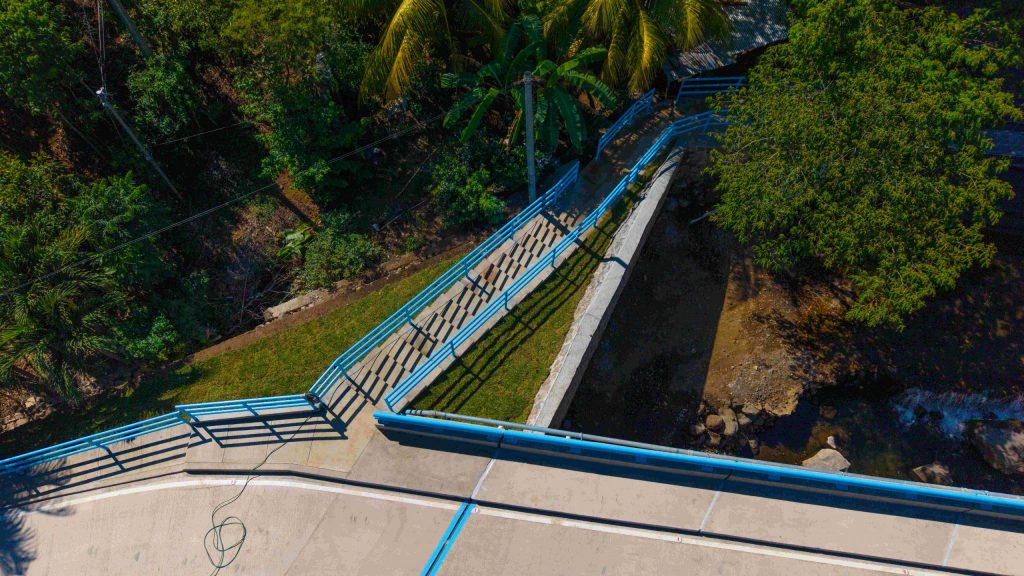 En rampa de salida lateral derecho se construyó una canaleta para realizar la descarga al río Tepechapa y en lateral izquierdo, una canaleta en corona de muro al pie de talud. La obra de paso y los accesos ha sido señalados, incluyendo los túmulos, reforzado con vialetas o reflectores para visualización nocturna.