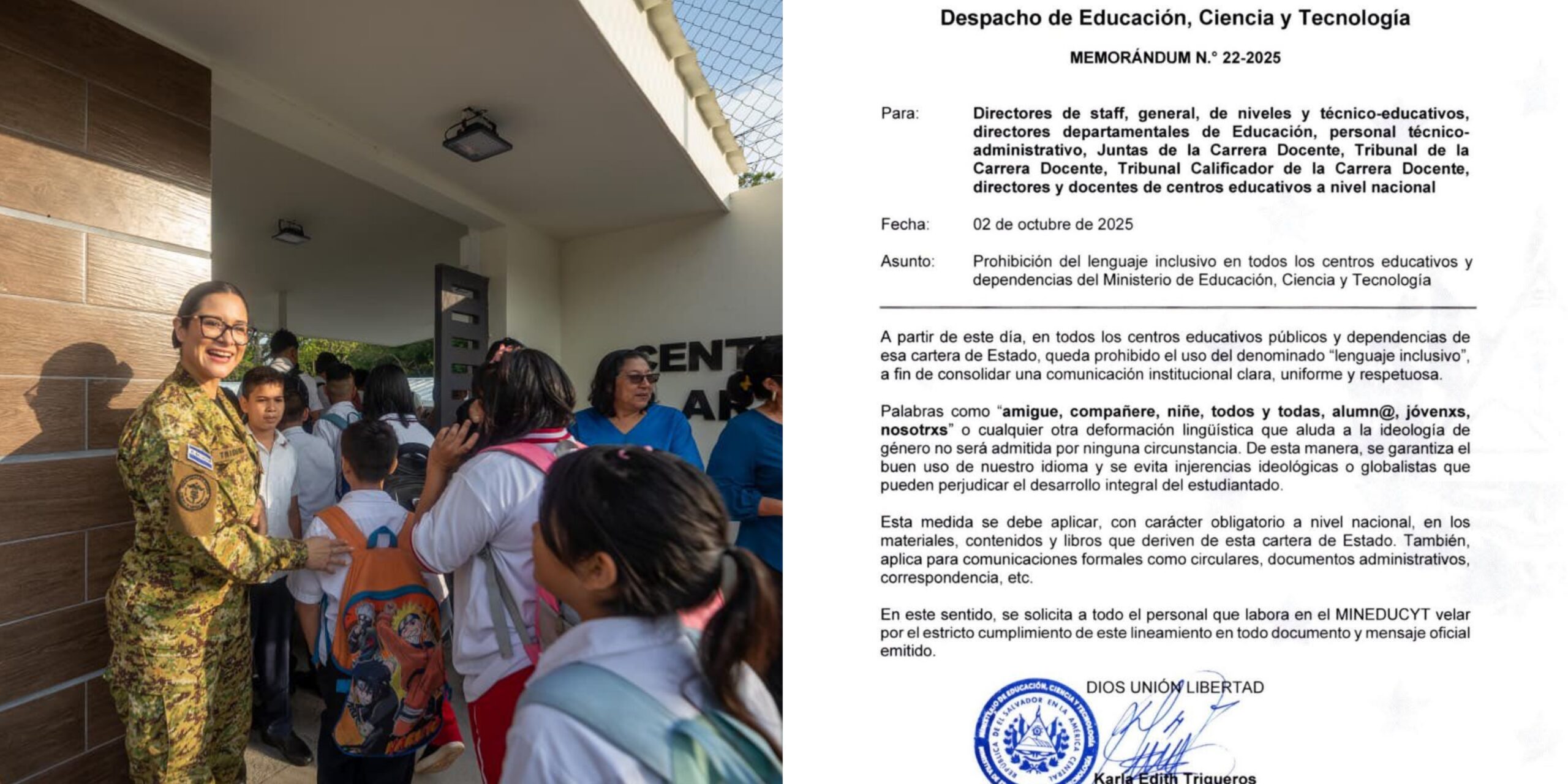 La prohibición forma parte de una serie de lineamientos impulsados por Trigueros desde su llegada al ministerio en agosto pasado. La funcionaria, quien además ostenta el rango de capitana del Ejército, fue designada por Bukele con la tarea de llevar a cabo una “transformación” en el sistema educativo.