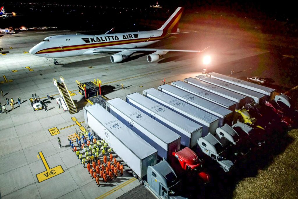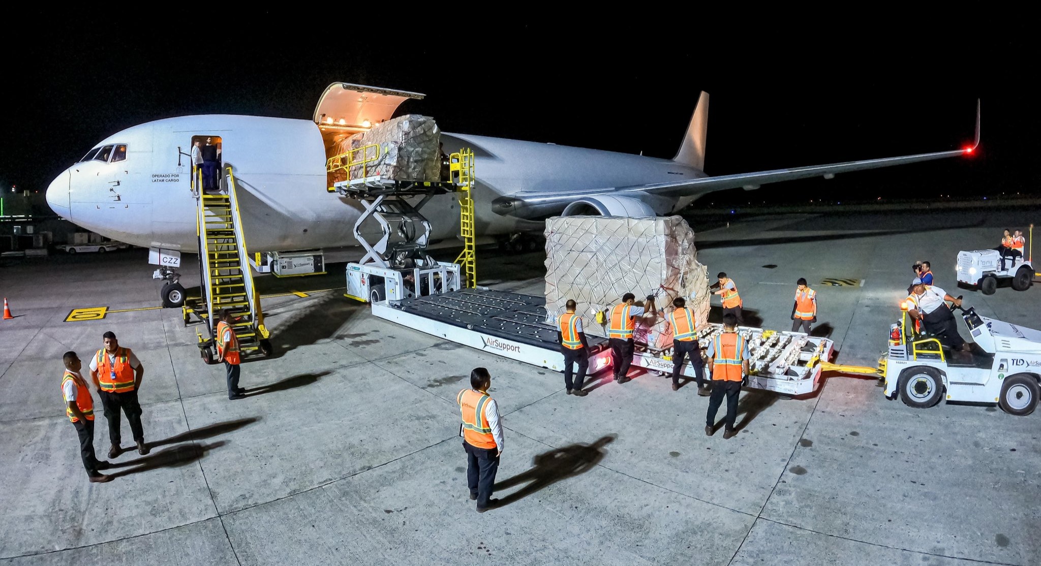 Durante la noche del lunes, la ministra de Educación, Karla Trigueros, recibió en el Aeropuerto Internacional de El Salvador “San Óscar Arnulfo Romero y Galdámez” un nuevo cargamento de uniformes escolares.