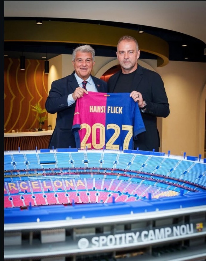 La firma del nuevo acuerdo tuvo lugar en las oficinas del club con la presencia del presidente Joan Laporta, el vicepresidente primero Rafa Yuste y el director deportivo Deco. “El FC Barcelona y Hansi Flick han llegado a un acuerdo para la renovación de su contrato”, comunicó oficialmente la entidad azulgrana.