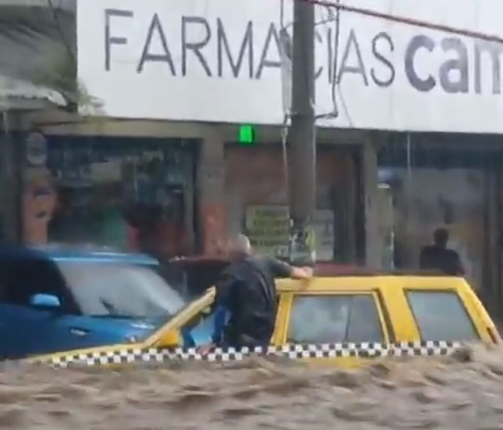 Protección Civil informó que las precipitaciones ocasionaron el colapso de tragantes y daños en el pavimento en distintos puntos del municipio, mientras varias calles quedaron cubiertas de agua y lodo. En algunos sectores, los vehículos fueron arrastrados por la corriente, lo que obligó a los equipos de rescate a intervenir.