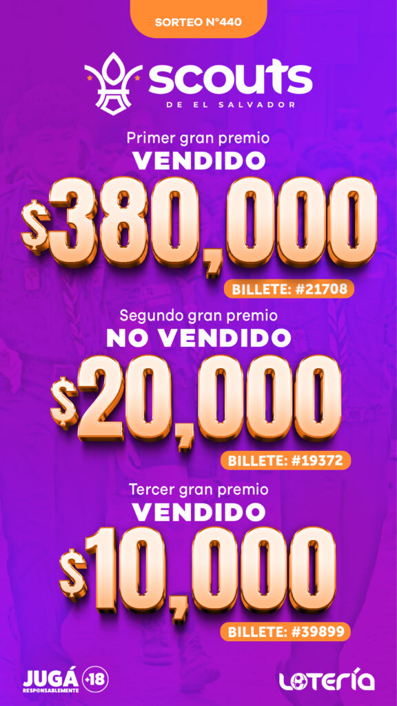 Sorteo LOTRA N.o 440“ dedicado a Asociación Scouts de El Salvador que trabaja cada día formando