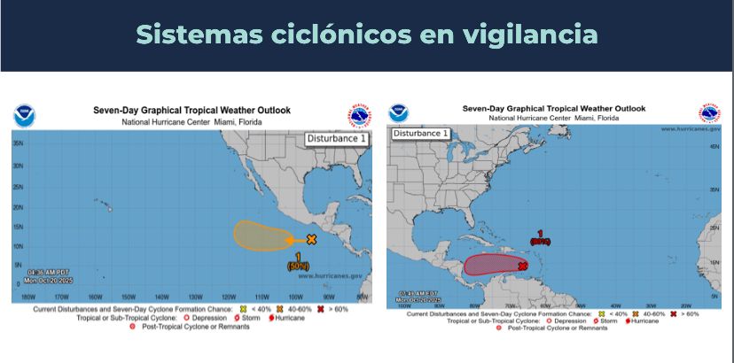 El ministro Fernando López indicó que se mantiene un monitoreo constante sobre dos sistemas ciclónicos, uno en el Pacífico y otro en el Atlántico, este último con 80 % de probabilidad de desarrollo.