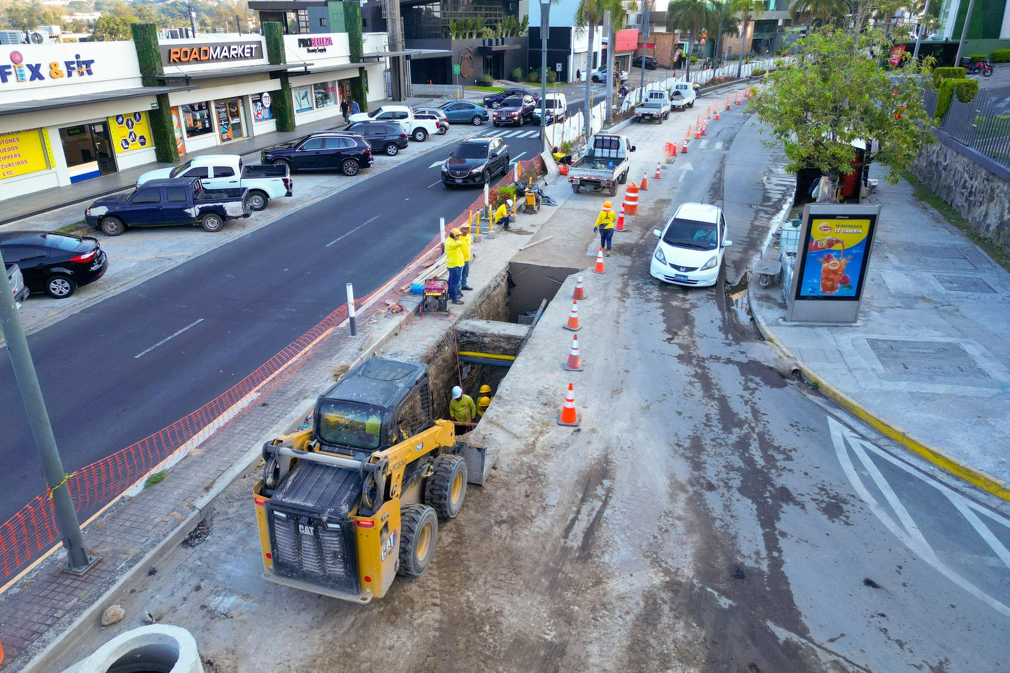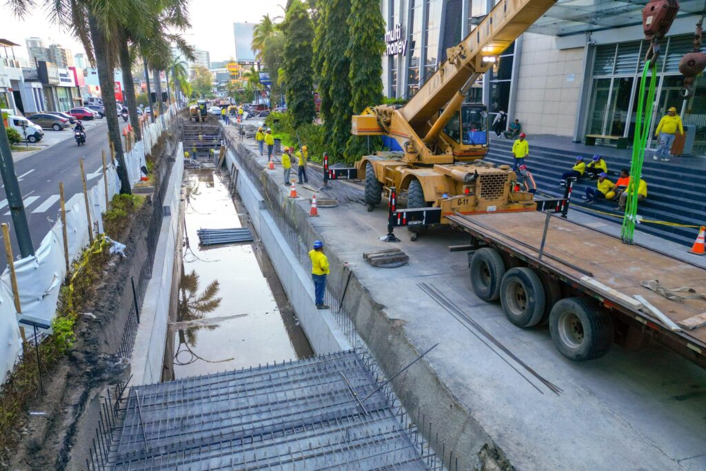 Entre las principales obras en desarrollo se encuentra la instalación de 24 losas que forman parte de una cisterna de detención subterránea. Esta estructura tendrá una longitud aproximada de 180 metros y una capacidad para almacenar hasta 1,000 metros cúbicos de aguas lluvias.