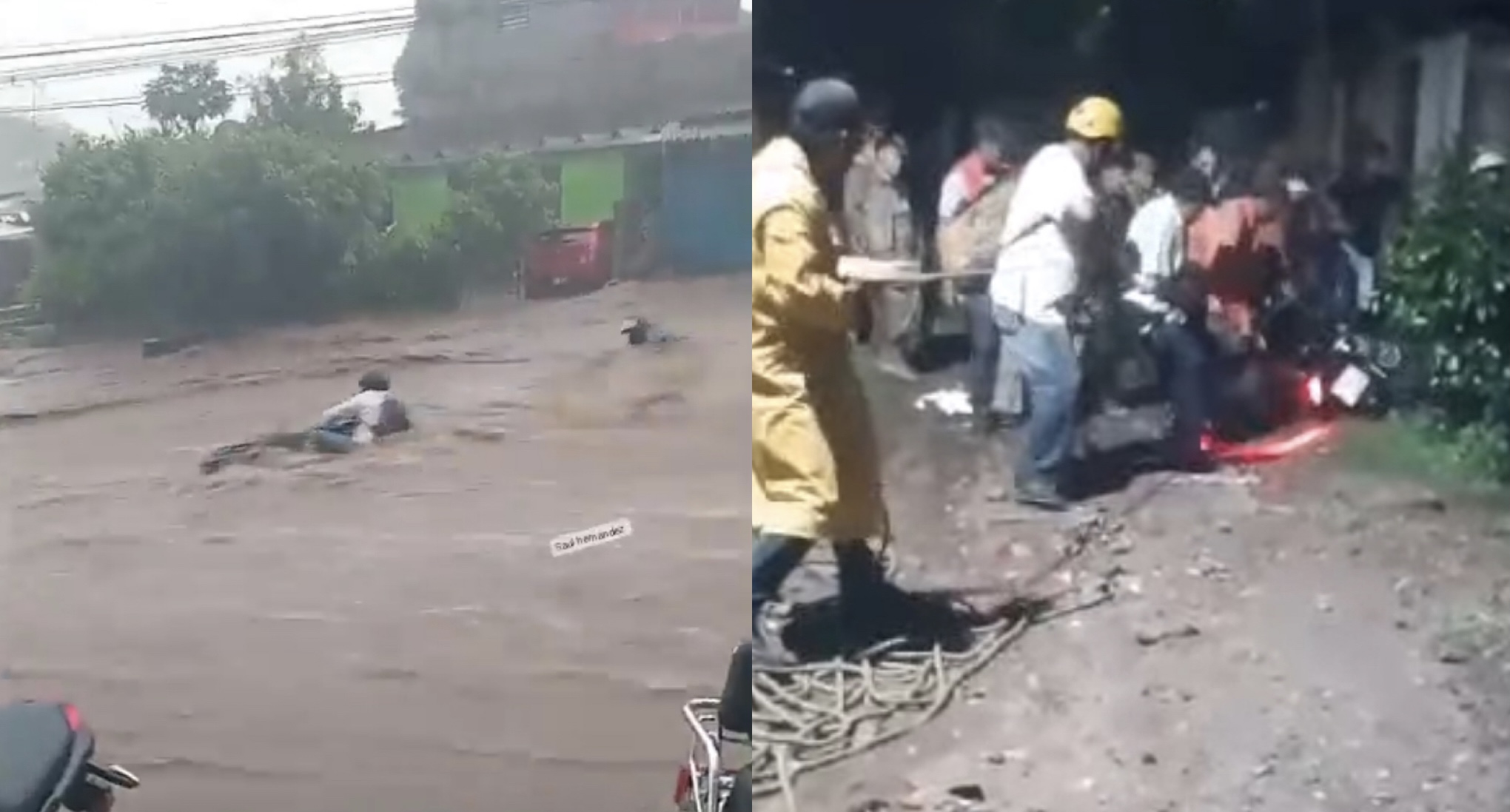 En la tarde del martes se registraron fuertes lluvias en Santa Ana, generando inundaciones en diferentes calles, generando que dos motociclistas fueran arrestados por una fuerte corriente.