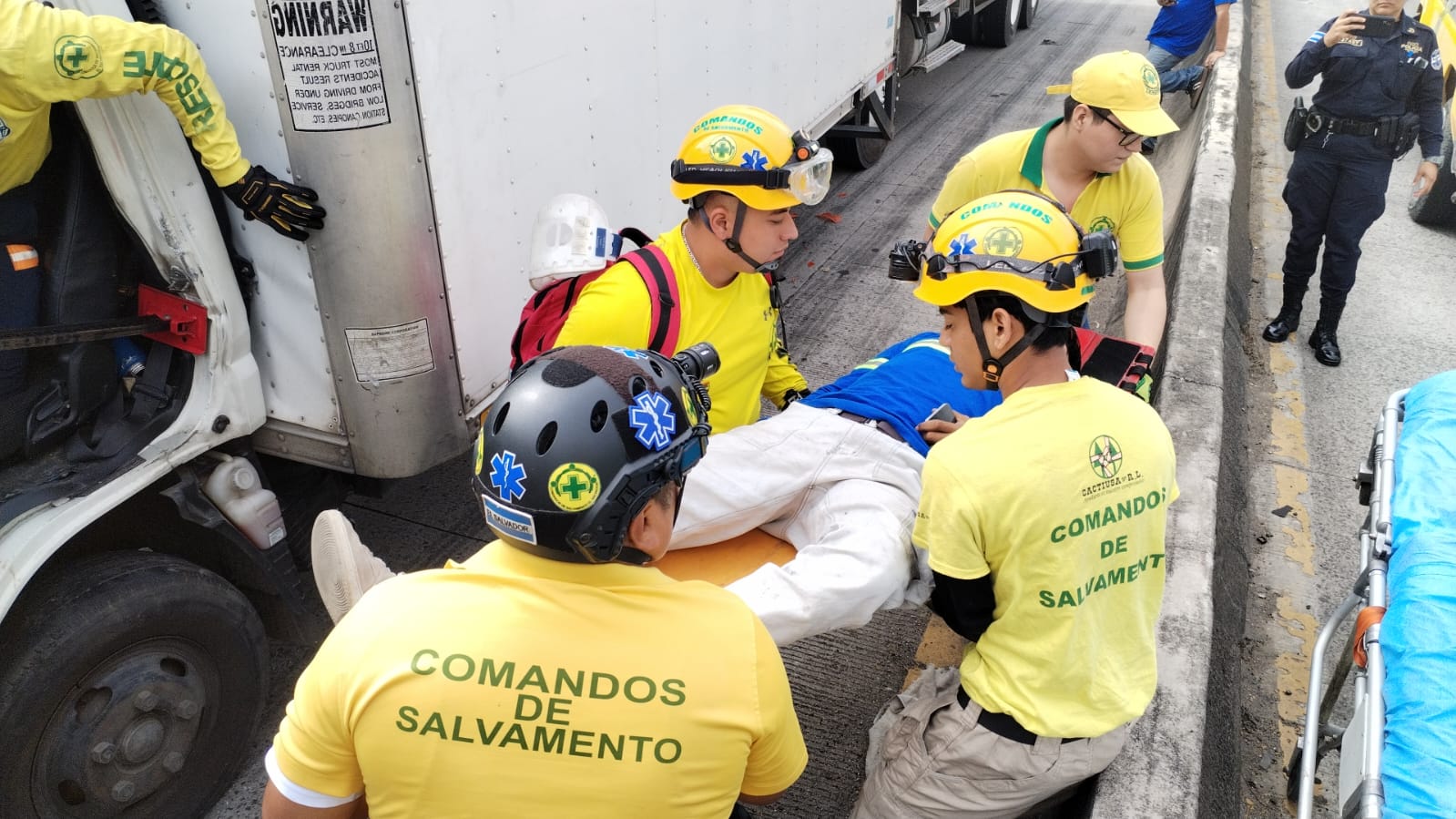 La víctima, identificada como Alfredo Amaya, de 30 años, fue rescatada por los socorristas tras permanecer atrapada entre los hierros retorcidos de la cabina. Amaya fue atendido en el lugar y posteriormente trasladado a un centro asistencial. Comandos de Salvamento confirmó que no hubo más personas lesionadas en el incidente.