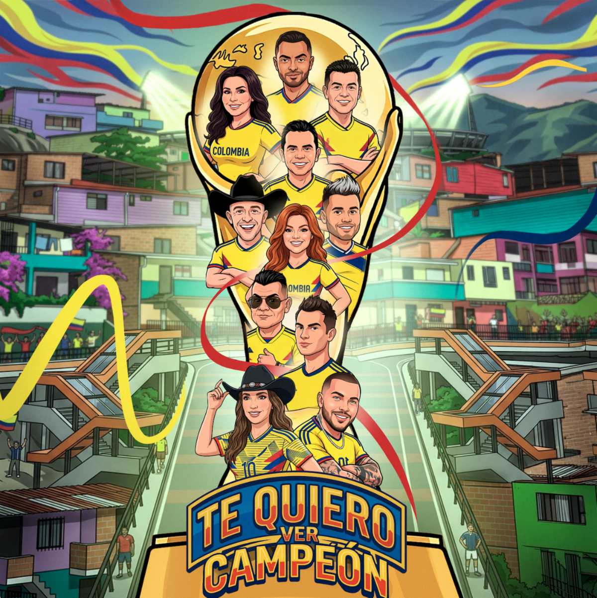 “Te Quiero Ver Campeón” es la nueva canción nacida desde el corazón de once de los artistas más queridos de la música popular colombiana: Jessi Uribe, Pipe Bueno, Luis Alfonso, Jhon Alex Castaño, Alzate, Jhonny Rivera, Luisito Muñoz, Ciro Quiñonez, Arelys Henao, Francy y Paola Jara. Juntos crearon lo que aspiran a que se convierta en el himno no oficial de la Selección Colombia de cara a la Copa Mundial FIFA.