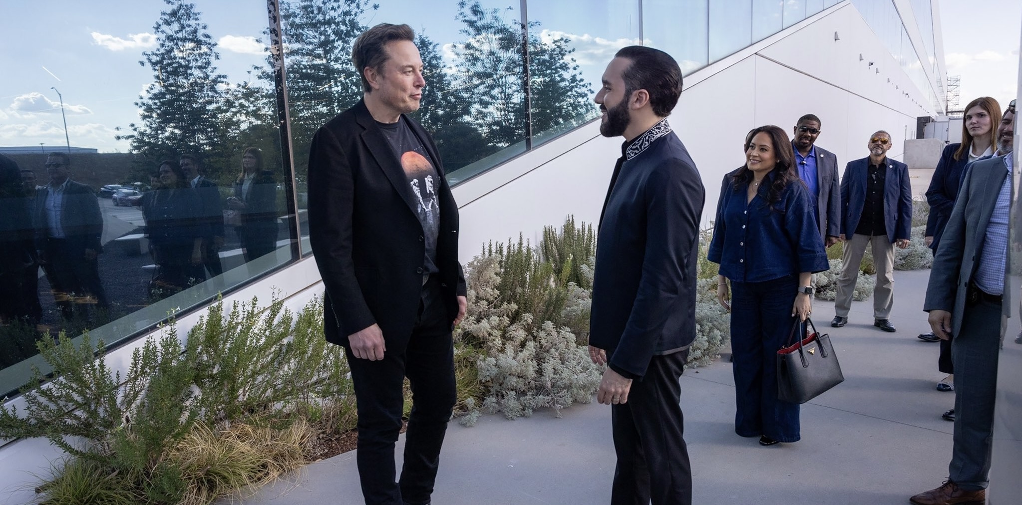 El presidente Nayib Bukele se reunió este viernes con el magnate Elon Musk en la planta Gigafactory, en Austin, Texas, donde se fabrican las baterías de los autos Tesla.