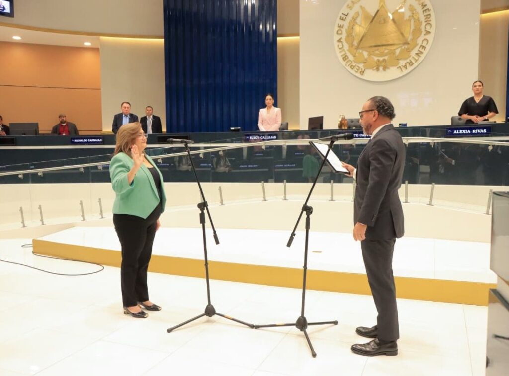 El presidente de la Asamblea Legislativa, Ernesto Castro, juramentó a la procuradora, marcando el inicio de su tercer mandato al frente de la PDDH.