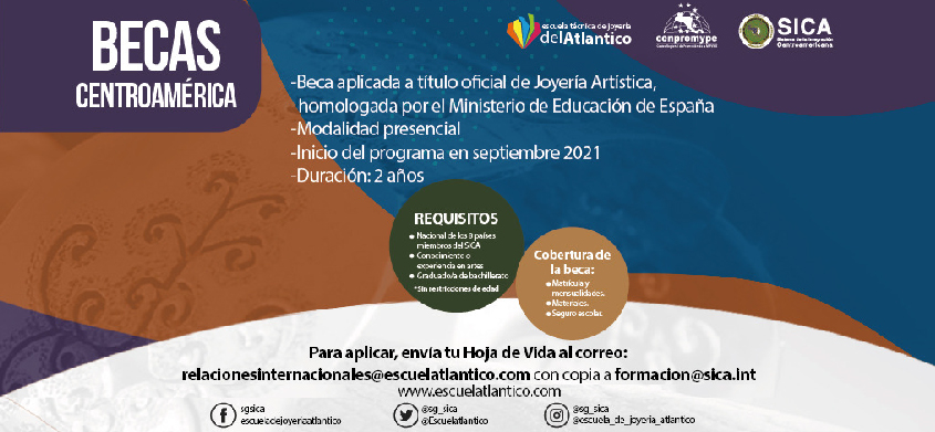 La Secretaría General del Sistema de la Integración Centroamericana (SG-SICA) y la Escuela de Joyería del Atlántico, en Vigo, España, convocan a la beca de joyería artística.