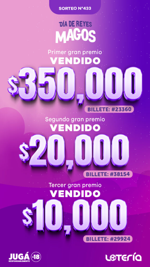 Primer Premio: $350,000 – Billete N.o 23360. Vendido.