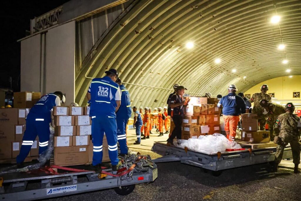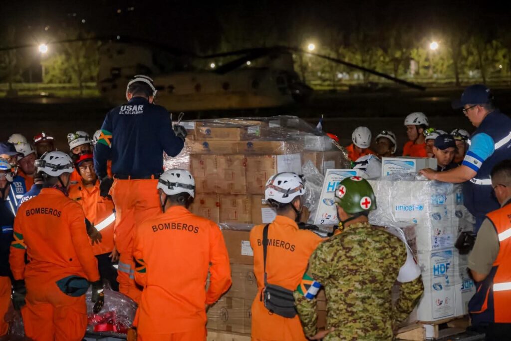 El cargamento incluye más de 50 toneladas de insumos, entre ellos alimentos, agua, medicinas y materiales de primera necesidad. Además, una delegación compuesta por más de 300 especialistas salvadoreños participa en la misión humanitaria, integrada por personal médico, bomberos, equipos de búsqueda y rescate, Protección Civil, la Fuerza Armada, la Unidad de Mantenimiento del Orden y el Ministerio de Salud.