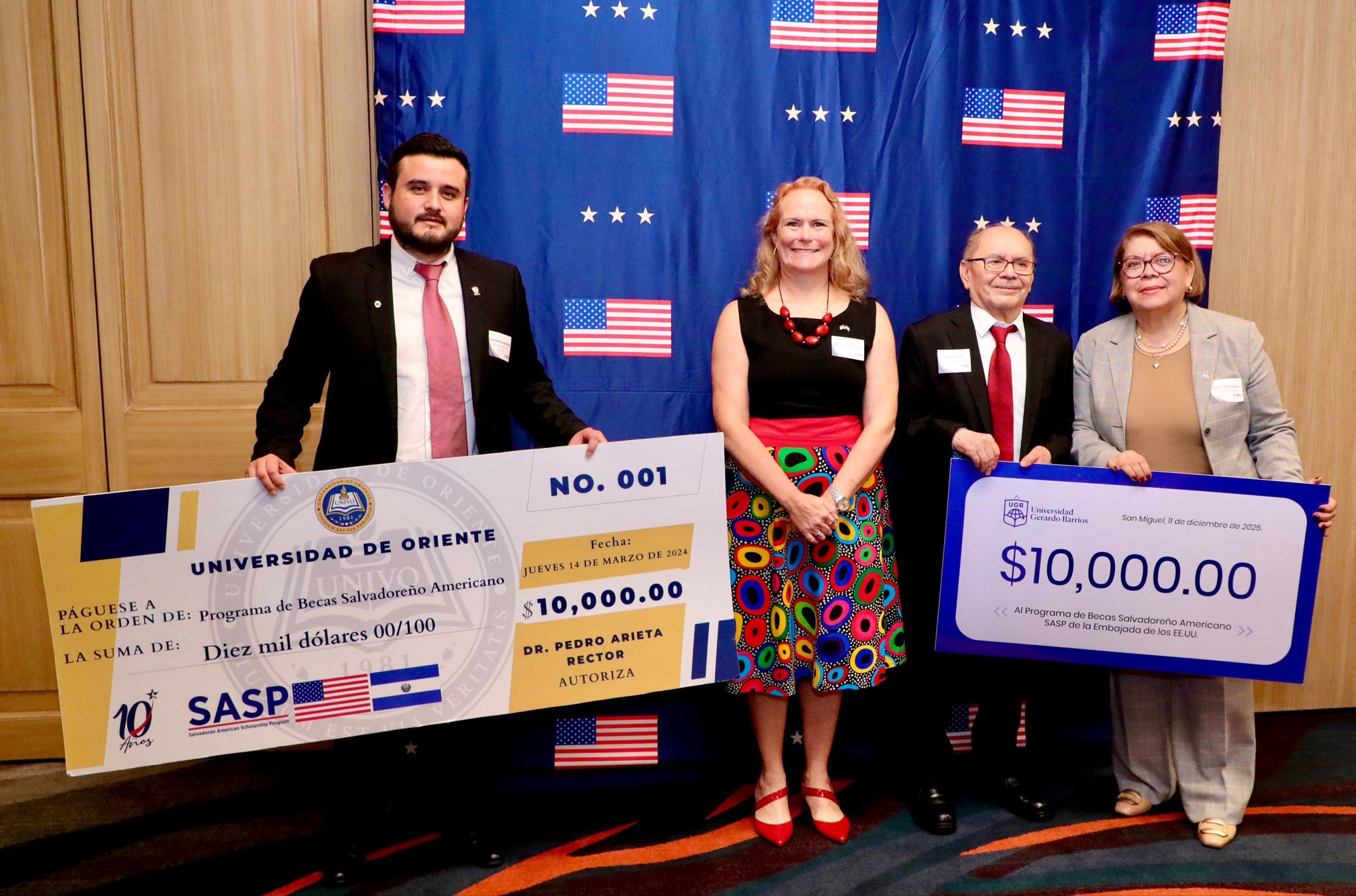 Durante un acto realizado este 12 de diciembre, la encargada de Negocios de la Embajada de Estados Unidos, Naomi Fellows, reconoció la contribución de los socios nacionales que se sumaron a la iniciativa, entre ellos la Universidad Gerardo Barrios y la Universidad de Oriente, que entregaron donativos por $20,000.